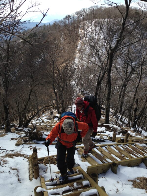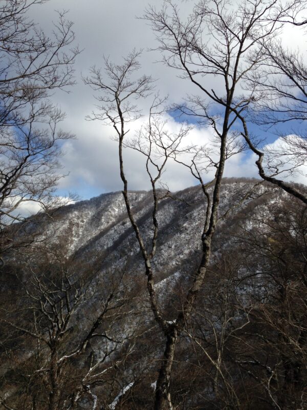 今回は加入道から山頂を経て久保へ降りるコースを縦走しましたが、下山路の北東面は雪も多く残り、稜線の日だまりとは違った冬ならではの厳しさに満ちた表情を見せてくれました。