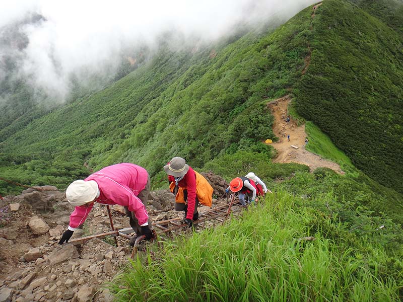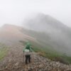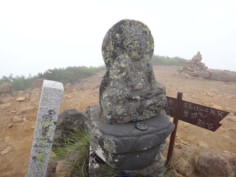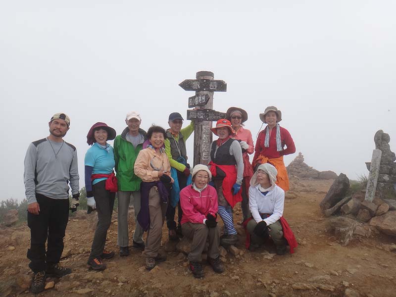 視界ゼロの山頂にて。それでも達成感はこの笑顔を見れば一目瞭然。