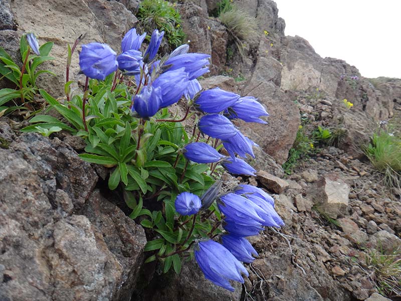まだ開いたばかりのチシマギキョウ。岩壁のサファイヤとも。