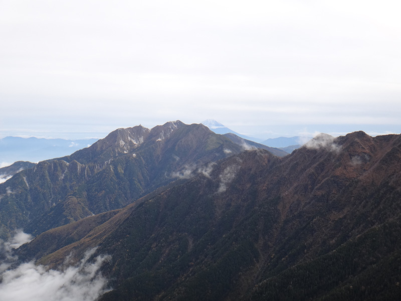 雲が晴れて、鳳凰三山越しに富士山も望めました。