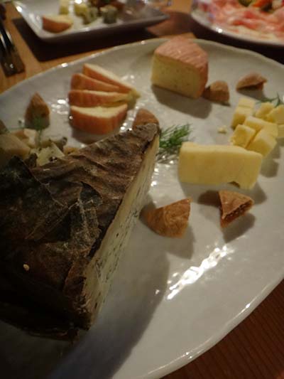 手前のチーズはスペイン産。カエデの葉で巻いてある。