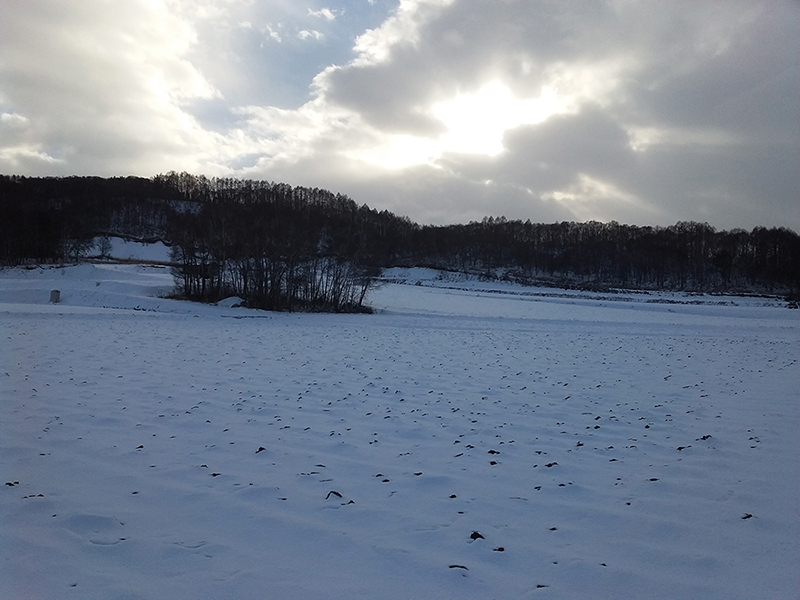 今日も午後遅く、いつもの帰路では雪雲の間から差す薄日がほの白く、冷たく発熱して綺麗でした。
