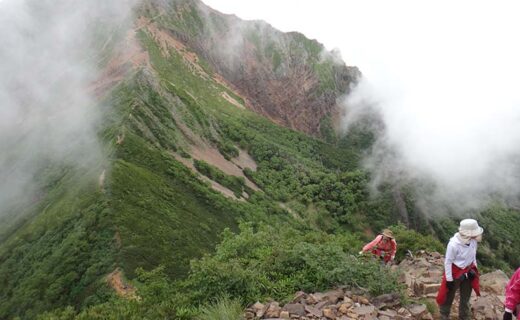 8月3日阿弥陀岳。一ヶ月振りのガイディング。 ガスに覆われた山頂から…