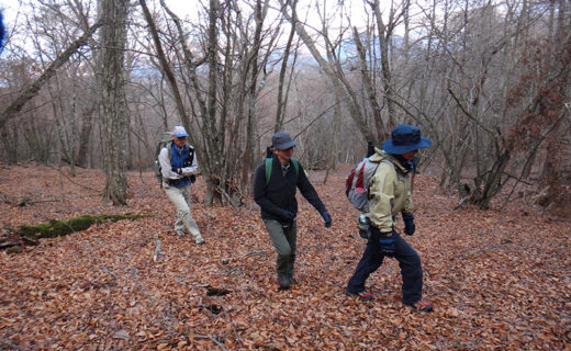 先週は友人達と初冬の富士山麓を歩きました。 冠雪した富士の頂きは曇天…